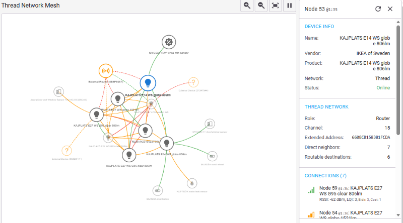 Jag har precis börjat att bygga ett nätverk baserat på Thread här hemma. Jag var nyfiken på hur mina enheter var anslutna till varandra och ville ha samma typ av karta som finns i ZHA och Z-wave. Efter lite letande hittade jag svaret på Home Assistant Community. Jag använder mina Thread enheter tillsammans med en Connect ZBT-1.