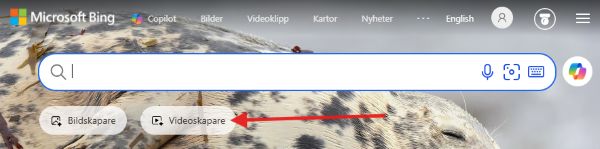 På webben kan jag gå till Bing och då hittar jag knappen Videoskapare direkt